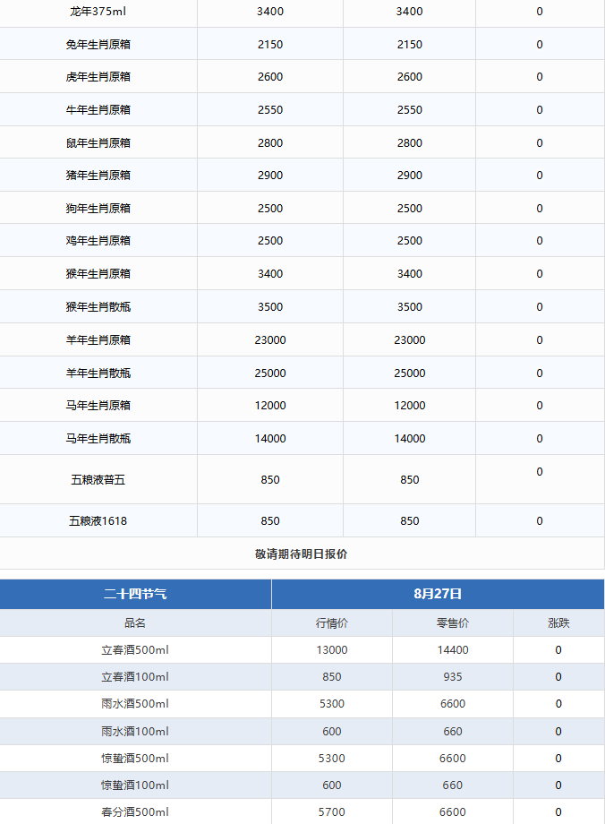 - 飞天持续下跌!茅台酒8月27日行情价