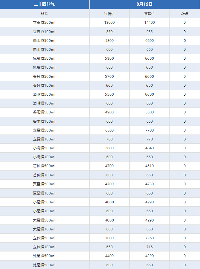 - 茅台酒9月19日行情价