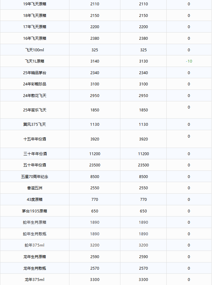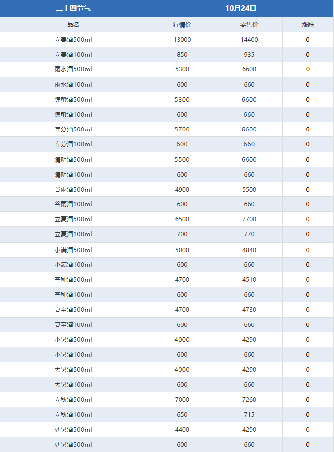 - 飞天持续下跌!茅台酒10月24日行情价