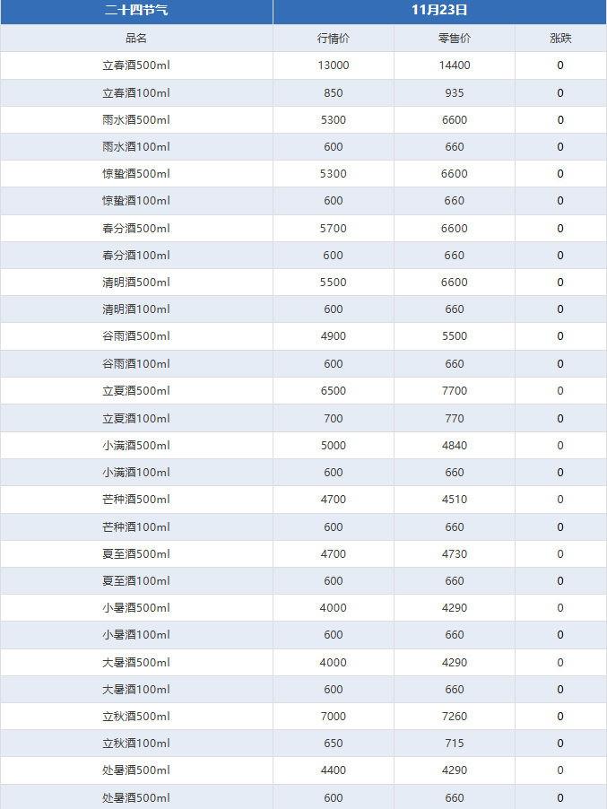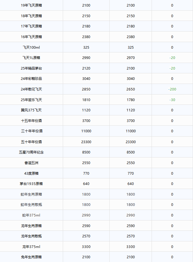- 全线下跌!茅台酒11月25日行情价
