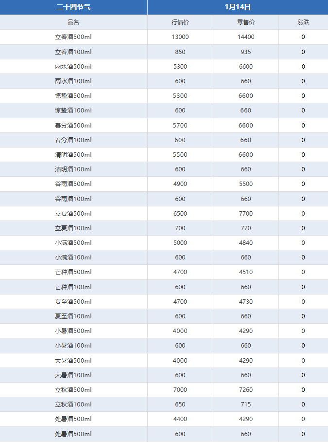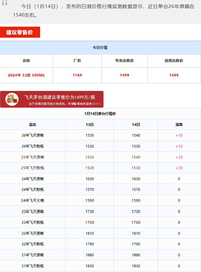 - 多款茅台酒降价!酒商意见很大!飞天上涨!茅台酒1月14日行情价