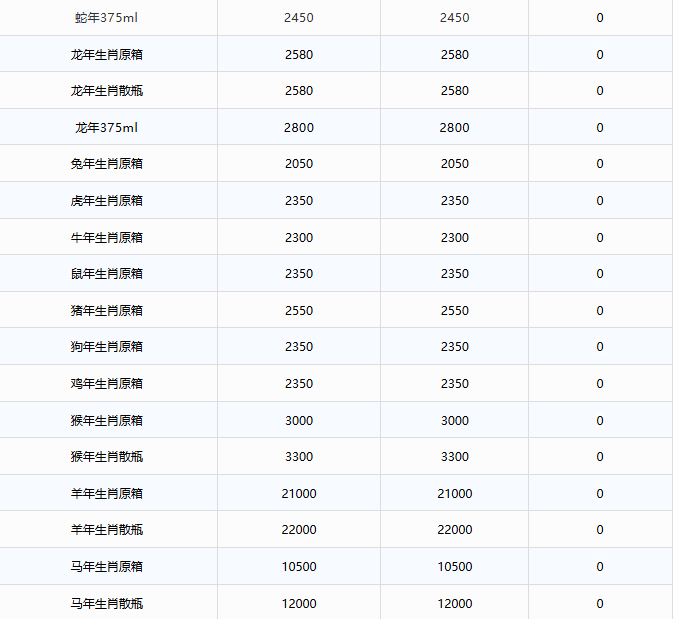 全线暴涨!茅台酒1月8日行情价 红色壹号,以永久馥郁,敬不朽时光。在每一个值得庆祝的时刻,与你一同定义属于这个时代的生活艺术。END喝红色壹号,展家国情怀!更多酒文化和人文文化请关注“红色壹号酒业”官方微博和公众号。 加载中~ 上一篇 飞天上涨!茅台酒12月29日行情价 下一篇 没有了 相关产品推荐 红色壹号 臻藏甲辰龙年 生肖酒 红色壹号 白酒酱香型·庚子新章生肖鼠古法传承技艺窖藏酱香白酒液体黄金 1000ml单瓶装 红色壹号 白酒酱香型·国品品鉴古法传承技艺窖藏酱香白酒液体黄金 12瓶整箱装 红色壹号 酱香型白酒中国红·品系列古法传承技艺窖藏500ml单瓶装 Hi, 如果您对此相关内容存有疑问,可以跟红小将联系哦! 联系红小将
