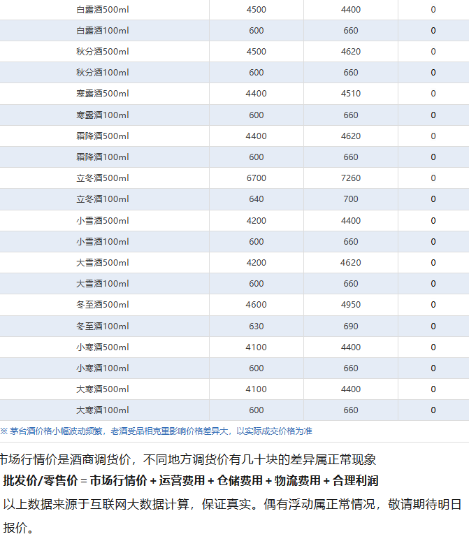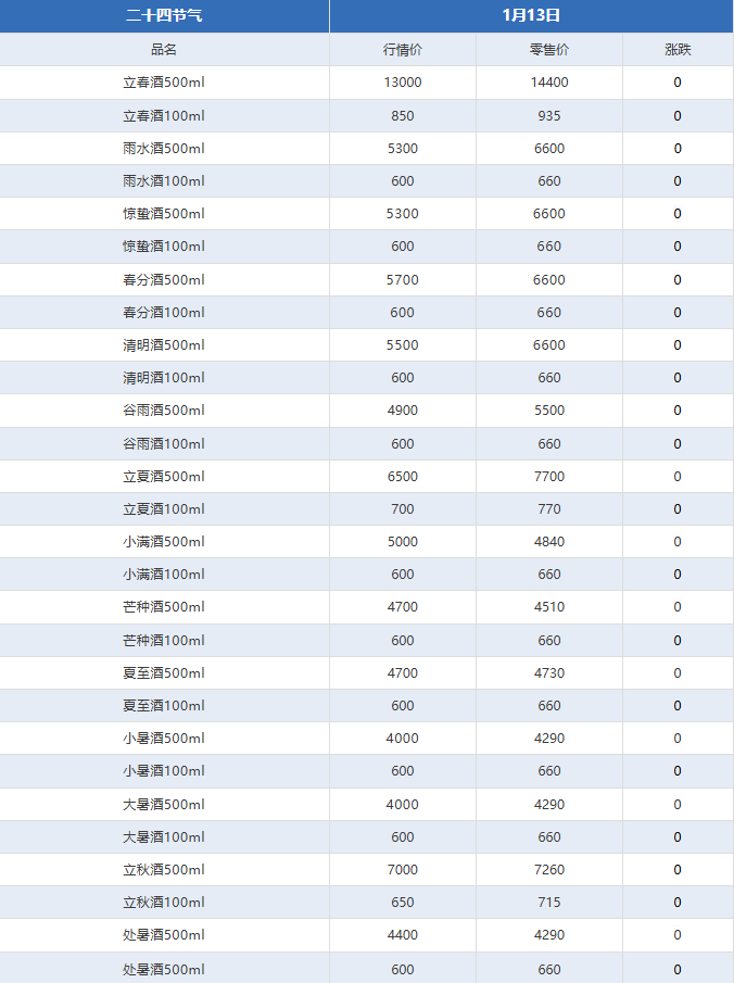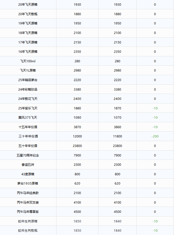 - 最高降价1990元,茅台多款核心产品拟下调出厂价!茅台酒1月13日行情价